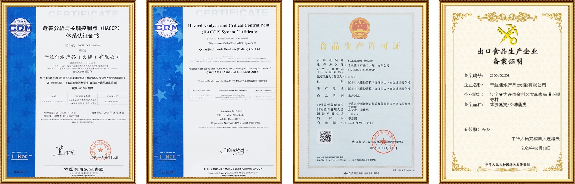 千丝佳水产品(大连)有限公司是以裙带菜为原料的收购、生产加工、出口为一体的大型加工企业,成立于2005年9月,位于大连市经济技术开发区大李家海岸,靠近裙带菜的原料产地,水产资源丰富,交通便利。